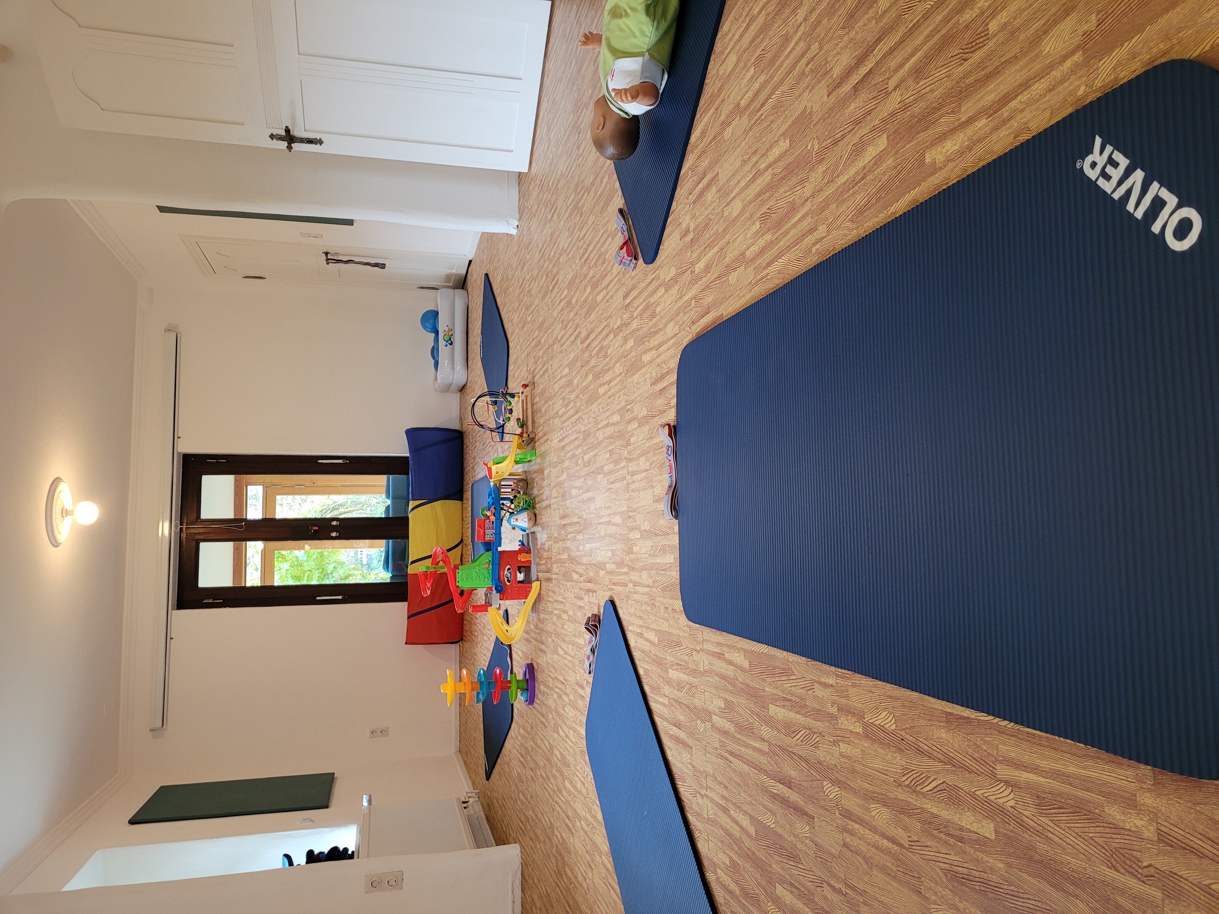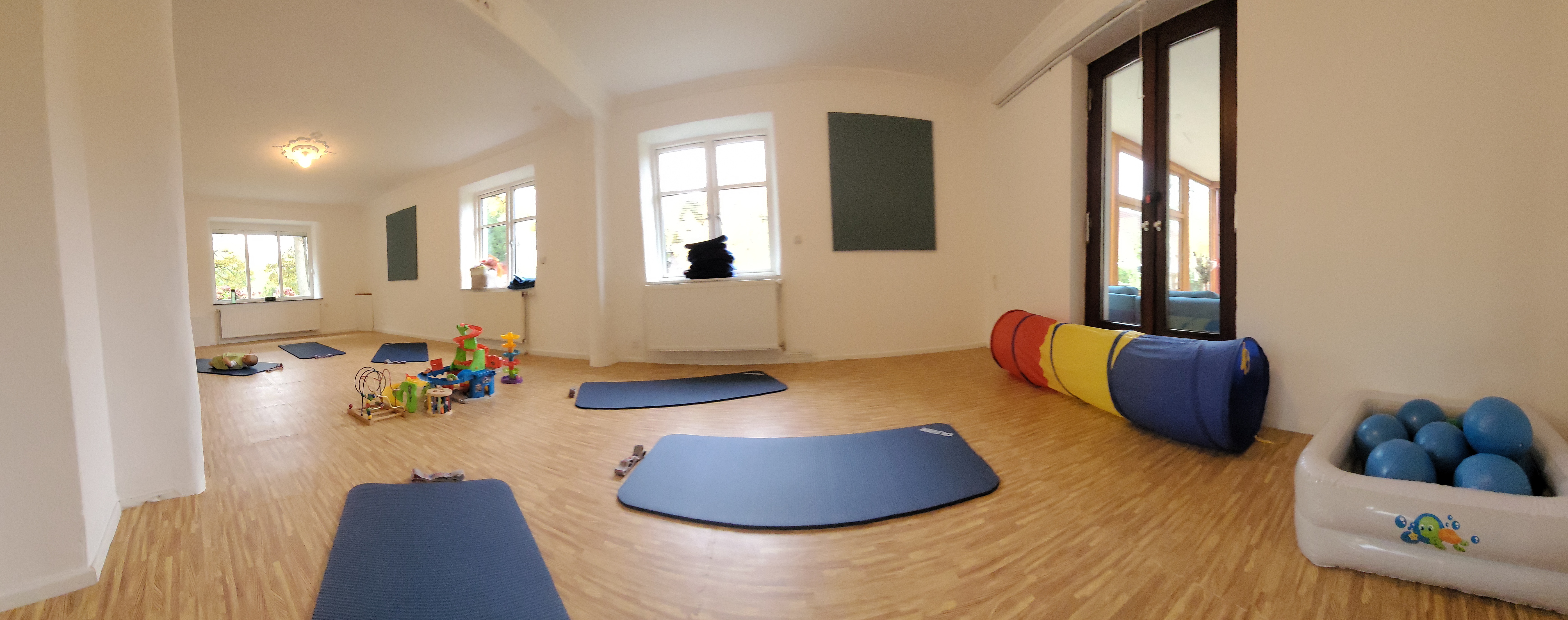 Der helle Kursraum mit weichem Mattenboden bietet viel Platz für Bewegung, Spiel und gemeinsame Zeit.